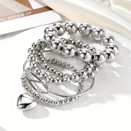 Exaggerated Hip Hop Style Heart Round Beads Bracelet Set with 5pcs
