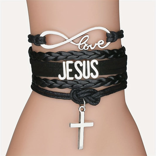 Men's Obsidian Volcanic Stone Multi-Layer Bracelet with Stainless Steel Cross, Natural Stone Layered Bracelet with Simple Design