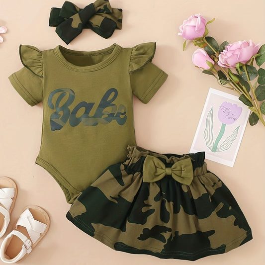 Baby Girls' Camouflage Onesie with Skirt and Headband Set