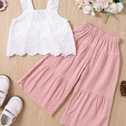 Floral Embroidered Sleeveless Crop Top and Wide Leg Pants Set for Toddler Girls (2pcs)