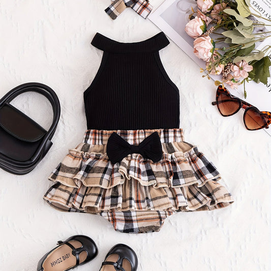 Baby Halter Top, Layered Plaid Skirt, and Headband Set