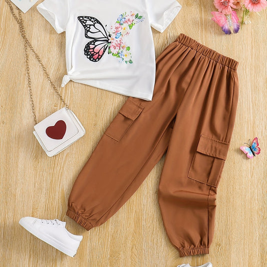2pcs Toddler Girls Floral T-Shirt and Cargo Pants Set