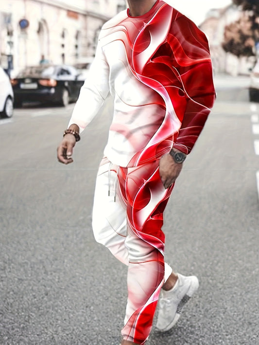 Men's Black & White 2-Piece Casual Outfit - Long Sleeve Crew Neck T-shirt and Drawstring Sweatpants