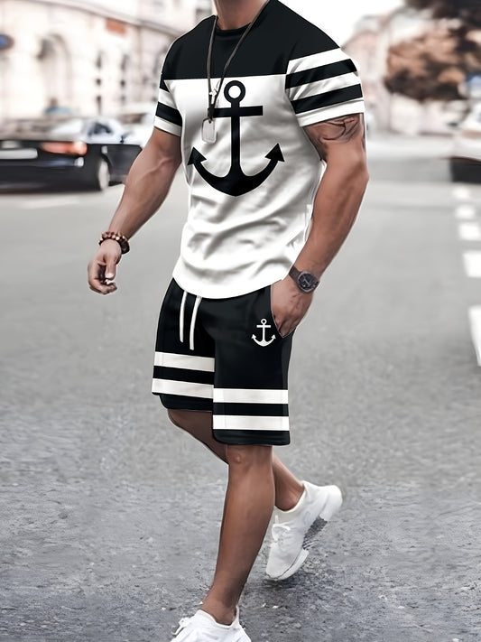 2-piece Men's Anchor and Stripe Pattern Outfit Set