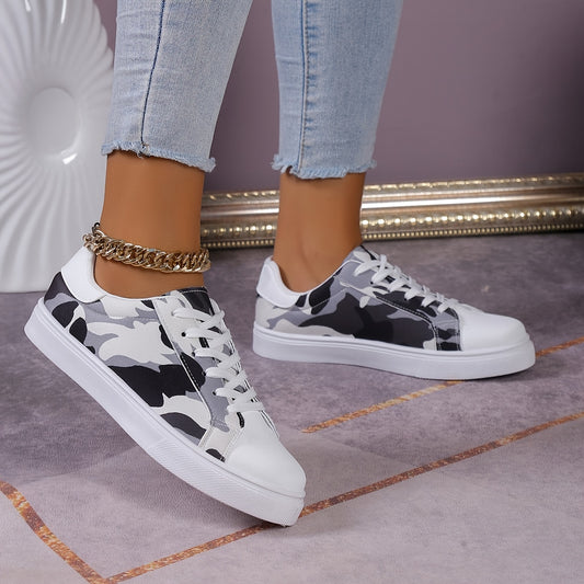 Women's Camouflage Print Sneakers - Casual Lace Up Outdoor Shoes - Comfortable Low Top Shoes